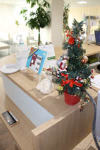 今年も、小さいですがツリーはもちろん、手作りの飾りなどで、少しでも患者様へ季節を感じて頂けるようにと思っております。