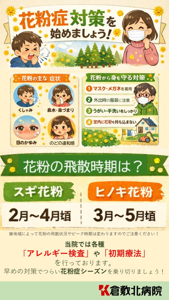 花粉症は我慢するものではなく、早めに対策することでコントロールできる疾患です。初期療法を上手に取り入れ、つらい季節を少しでも快適に過ごしましょう。